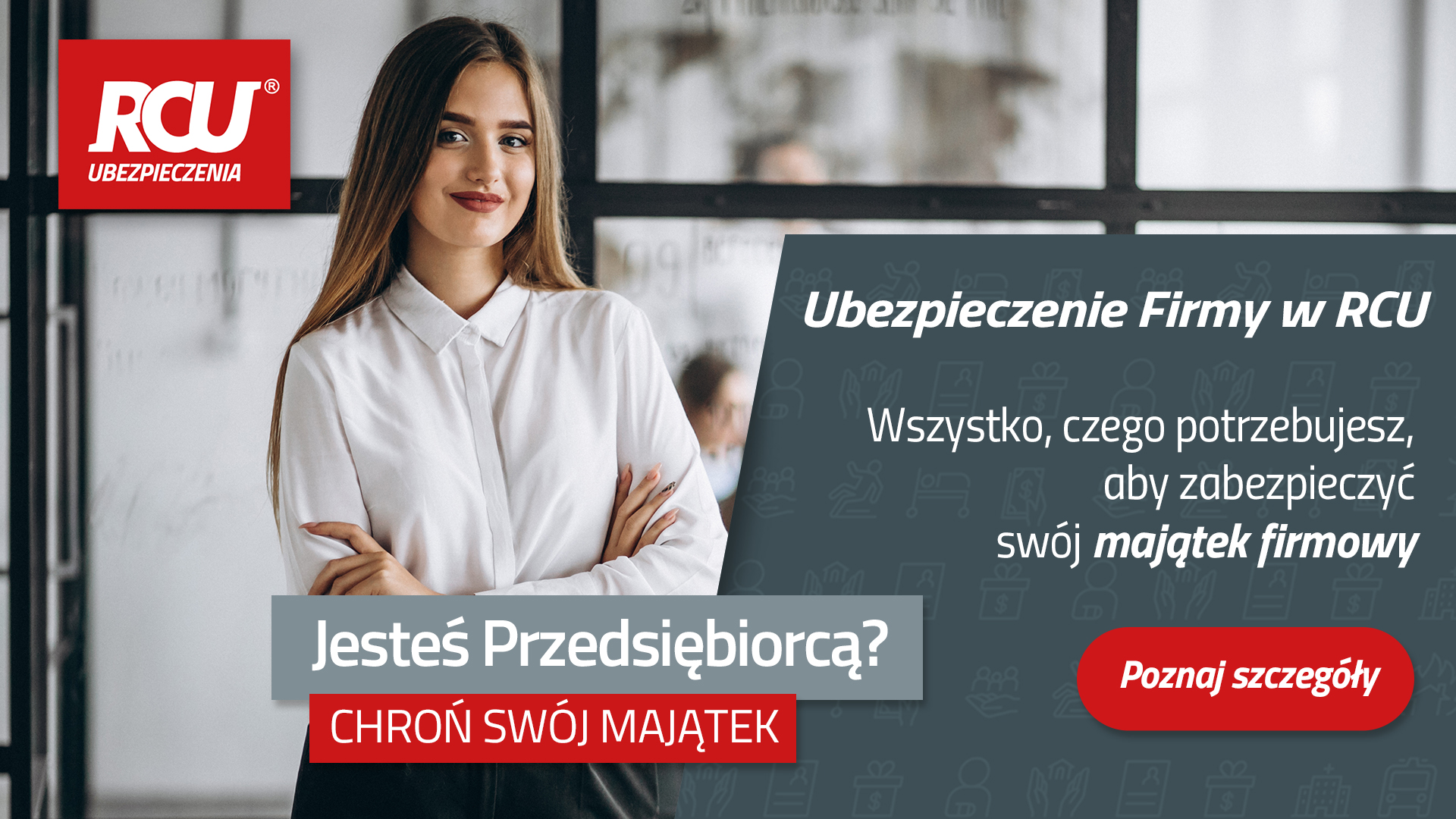 Prowadzisz firmę i chciałbyś się zabezpieczyć, ale nie wiesz od czego możesz się uchronić? Każda firma ma swoją specyfikę, a my jesteśmy od tego, aby zakres ubezpieczenia sprostał oczekiwaniom naszych Klientów! Decydując się na ubezpieczenie firmowe, zyskujesz ochronę majątku firmy od zdarzeń losowych oraz kradzieży i wandalizmu, a dzięki OC prowadzenia działalności zabezpieczasz siebie i pracowników od szkód wyrządzonych przez Twoją firmę.
